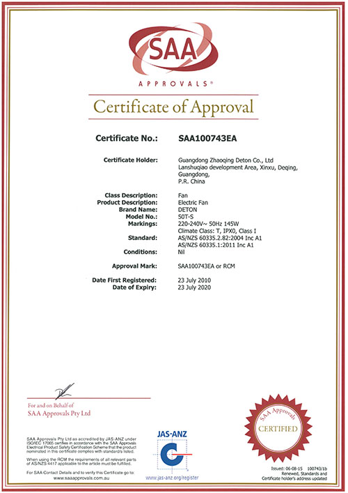 上一篇: 澳大利亞SAA證書 臺地式風扇