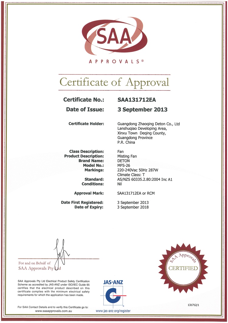 關鍵詞:澳大利亞SAA證書 E型霧化風扇來源:119.254.2.151:5894發布時間:2015-05-10
