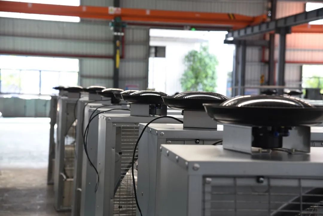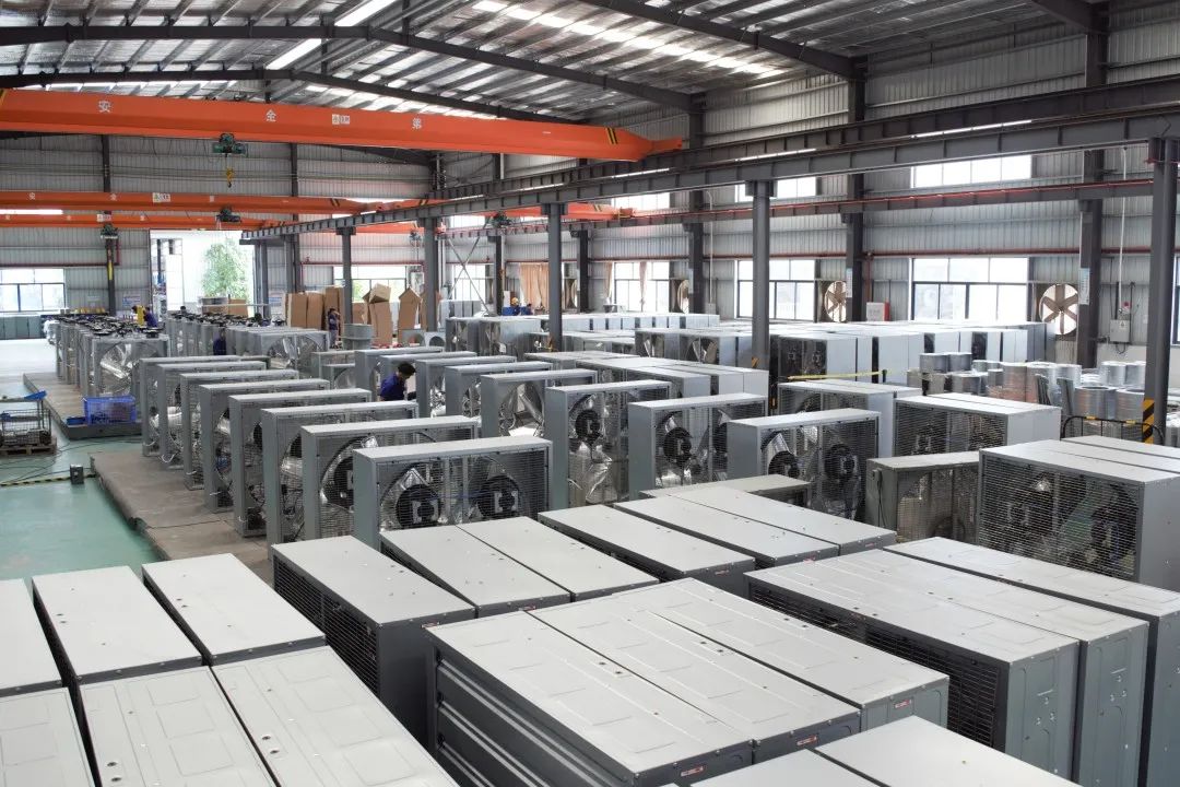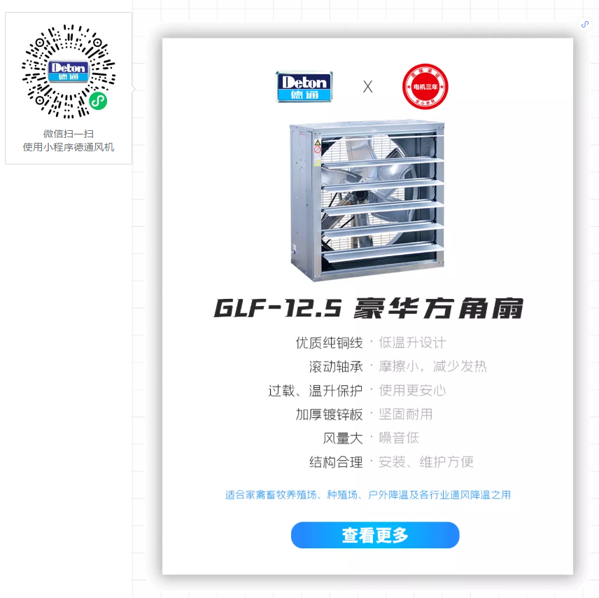 近日,德通風機車間正在緊張有序地生產一批熱帶地區的客戶訂單,該批訂貨分別為德通GLF12.5#豪華型方角扇(負壓風機)、GLF-12.5W霧化方角扇。